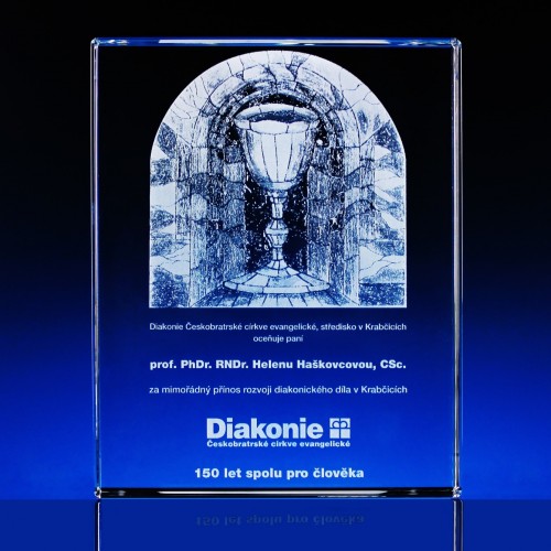 SKLENĚNÁ PLAKETA Z VYSOCE KVALITNÍHO LEŠTĚNÉHO OPTICKÉHO SKLA
