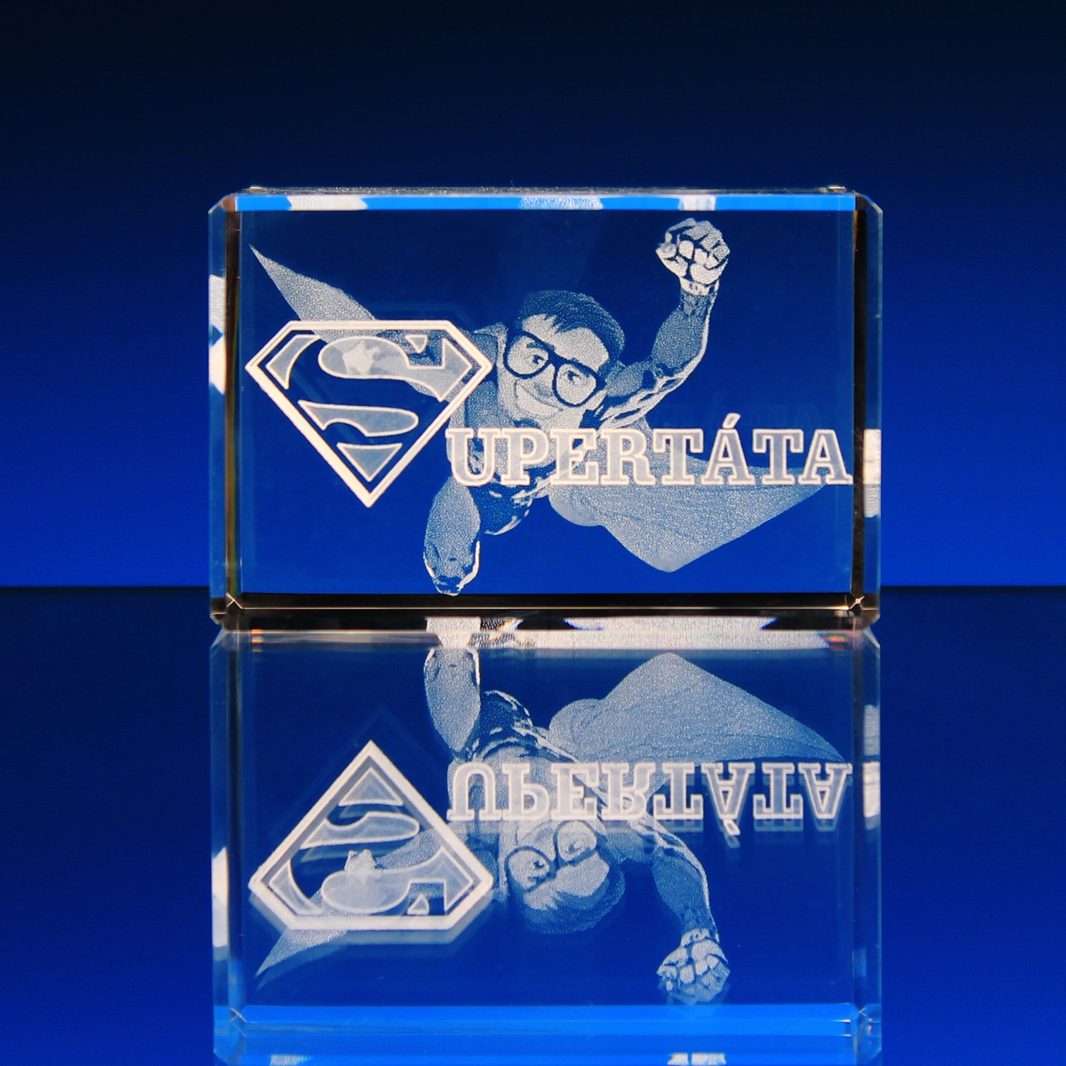 Skleněné těžítko s 3D supermanem