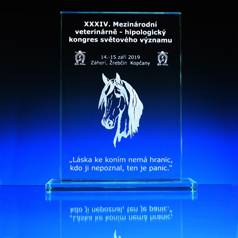 SKLENĚNÁ PLAKETA Z VYSOCE KVALITNÍHO LEŠTĚNÉHO OPTICKÉHO SKLA - ZELENÁ BARVA SKLA