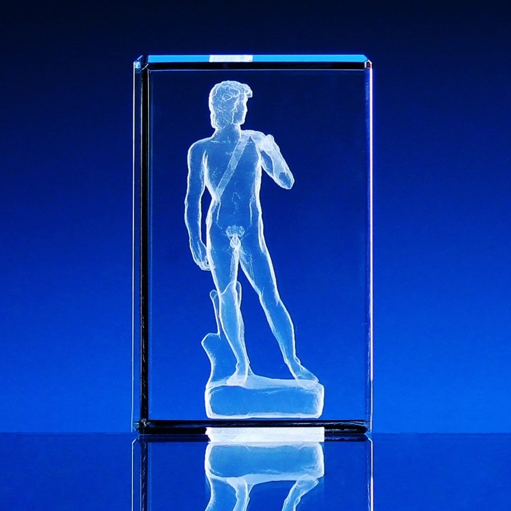 CENA obsahuje: 1x skleněné těžítko s vylaserovaným 3D motivem DAVID, laser 2D textů na přání a dárkovou krabičku