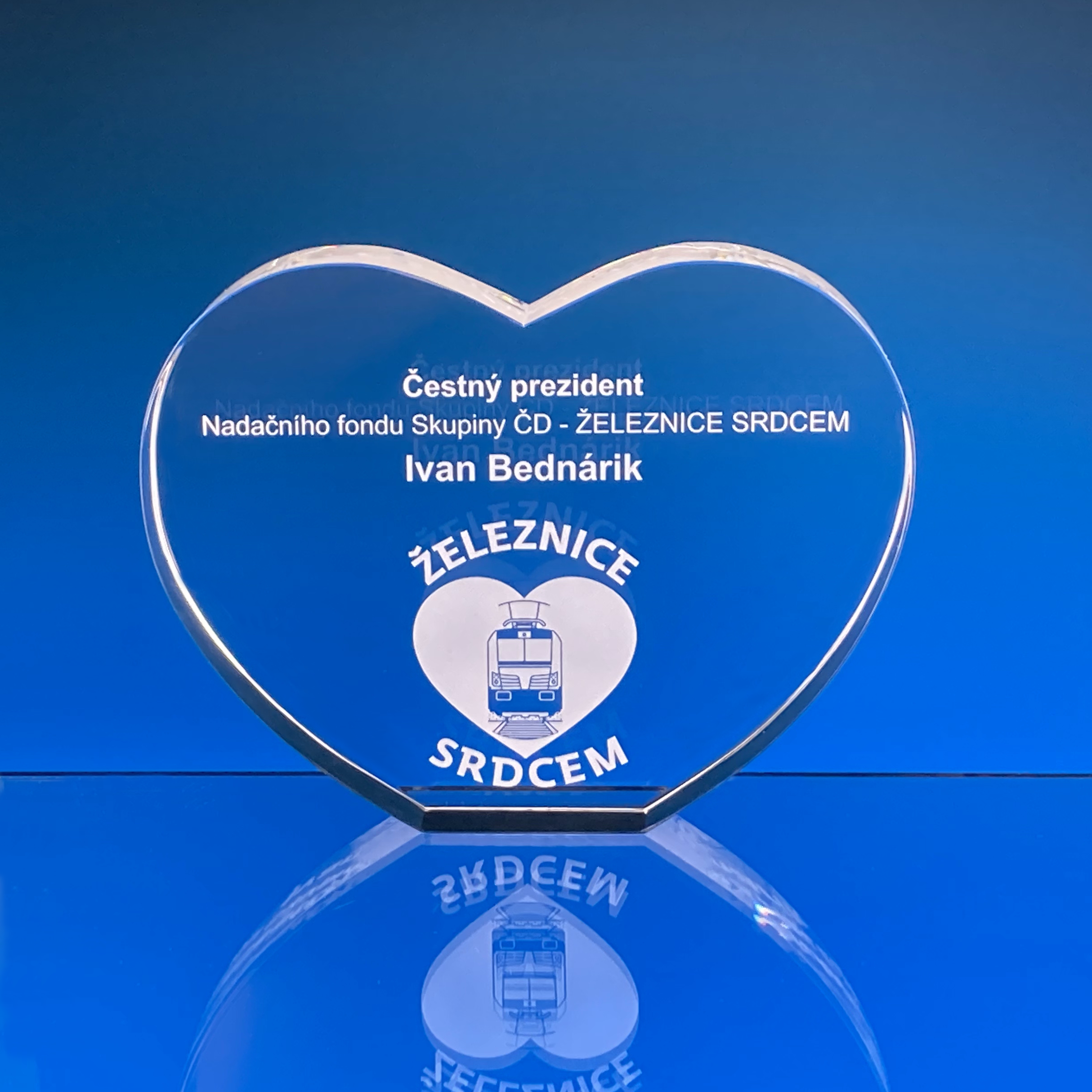 SKLENĚNÉ SRDCE Z VYSOCE KVALITNÍHO LEŠTĚNÉHO OPTICKÉHO SKLA