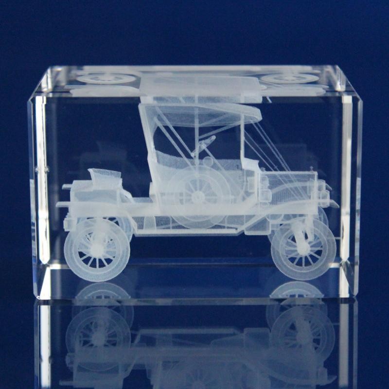 CENA obsahuje: 1x skleněné těžítko s laserovaným 3D motivem FORDU T, laser 2D textů na přání a dárkovou krabičku