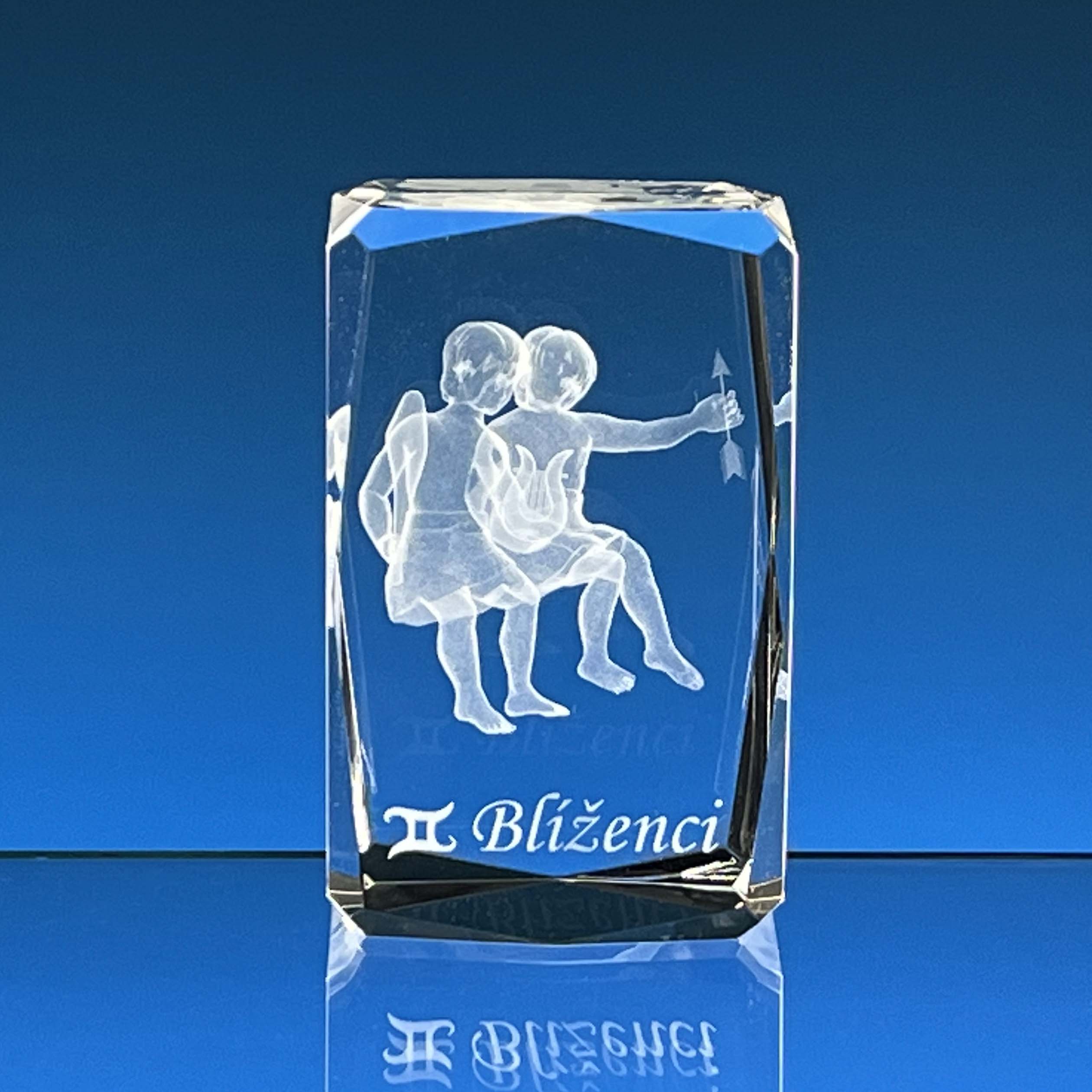 CENA obsahuje: 1x skleněné těžítko s laserovaným 3D motivem BLÍŽENCI, laser 2D textů na přání a dárkovou krabičku