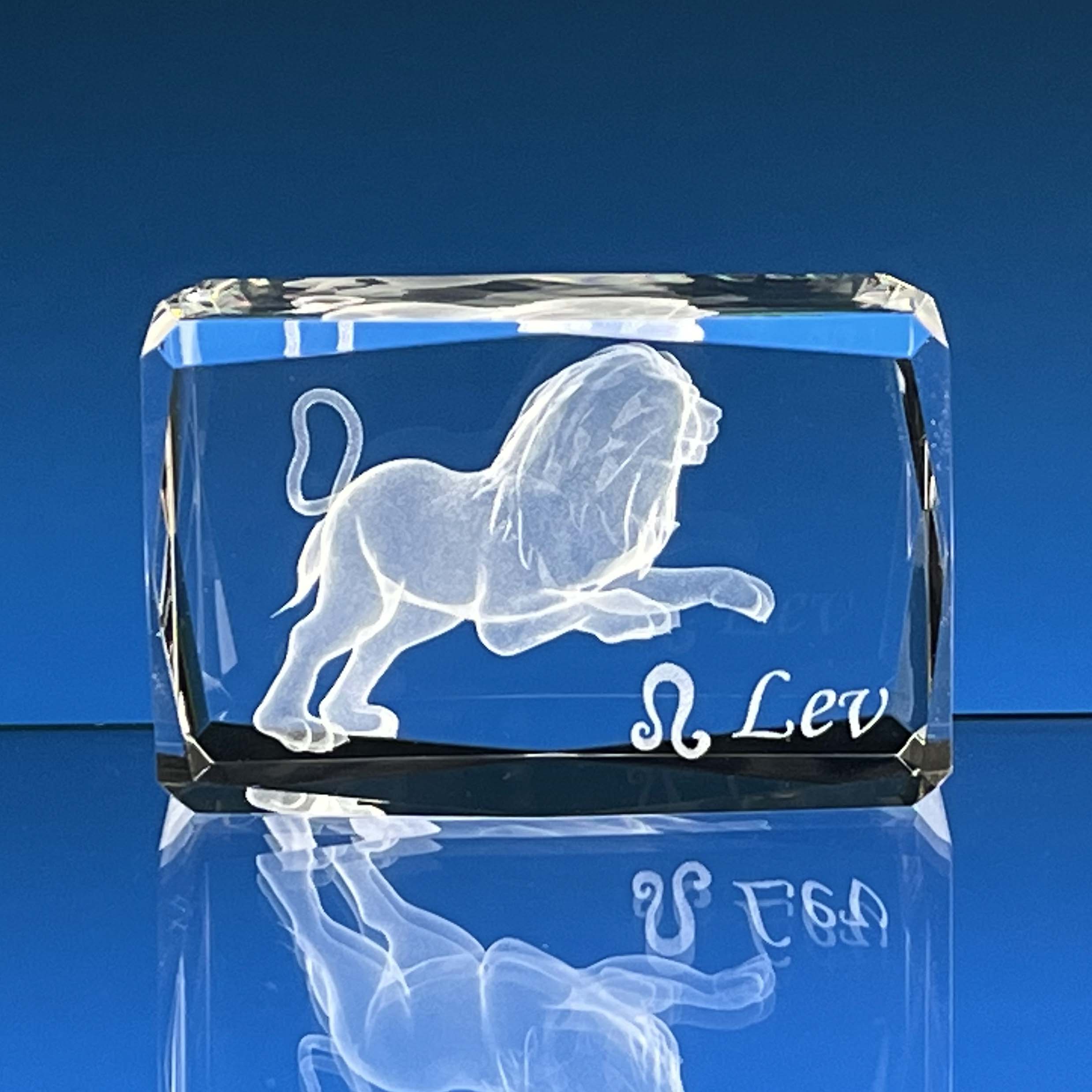 CENA obsahuje: 1x skleněné těžítko s laserovaným 3D motivem LEV, laser 2D textů na přání a dárkovou krabičku
