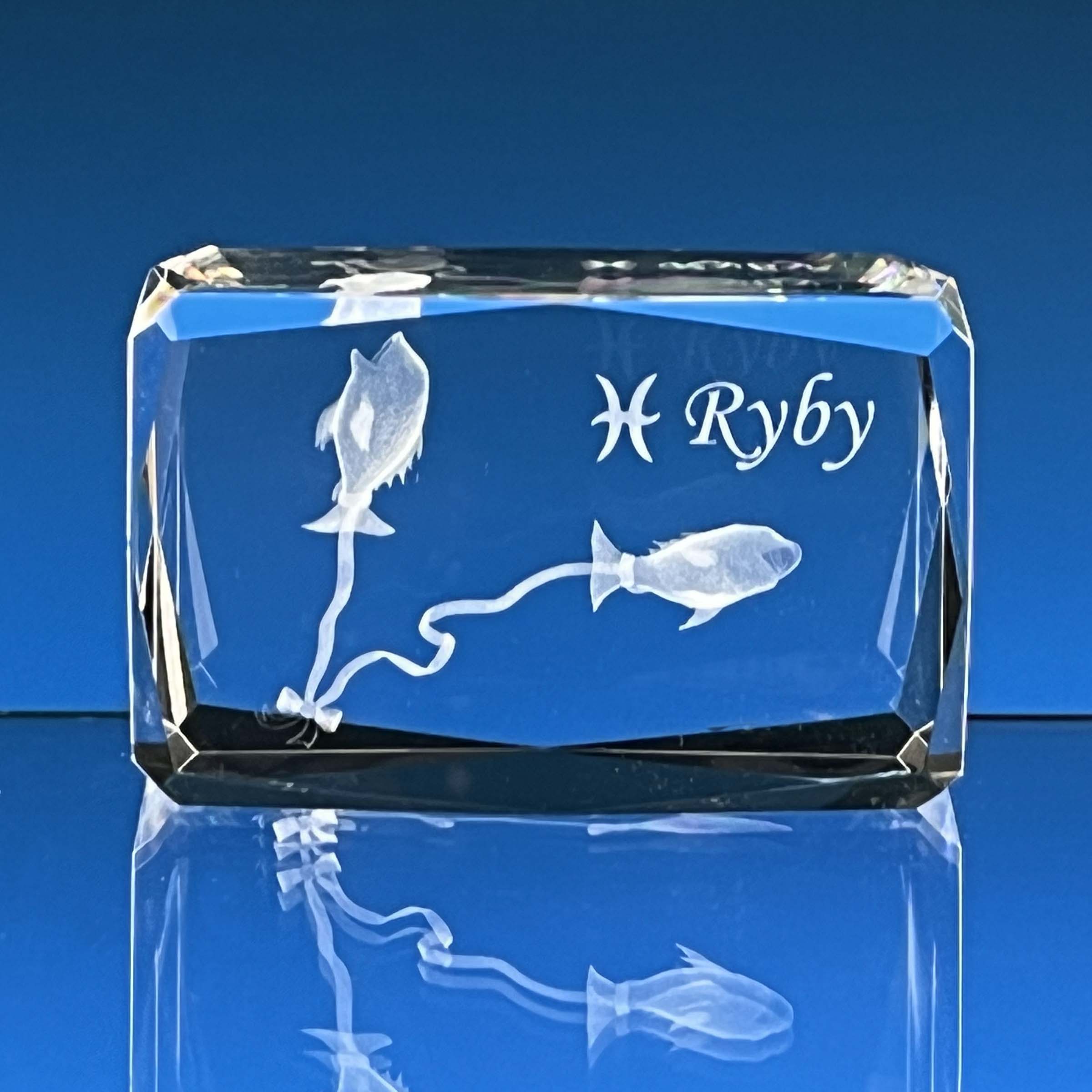 CENA obsahuje: 1x skleněné těžítko s laserovaným 3D motivem RYBY, laser 2D textů na přání a dárkovou krabičku
